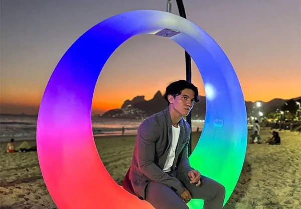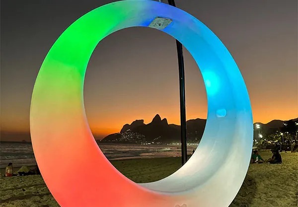 Balanço Led Instagramável Suspenso Iluminado, fabricado em resina de polietileno natural.